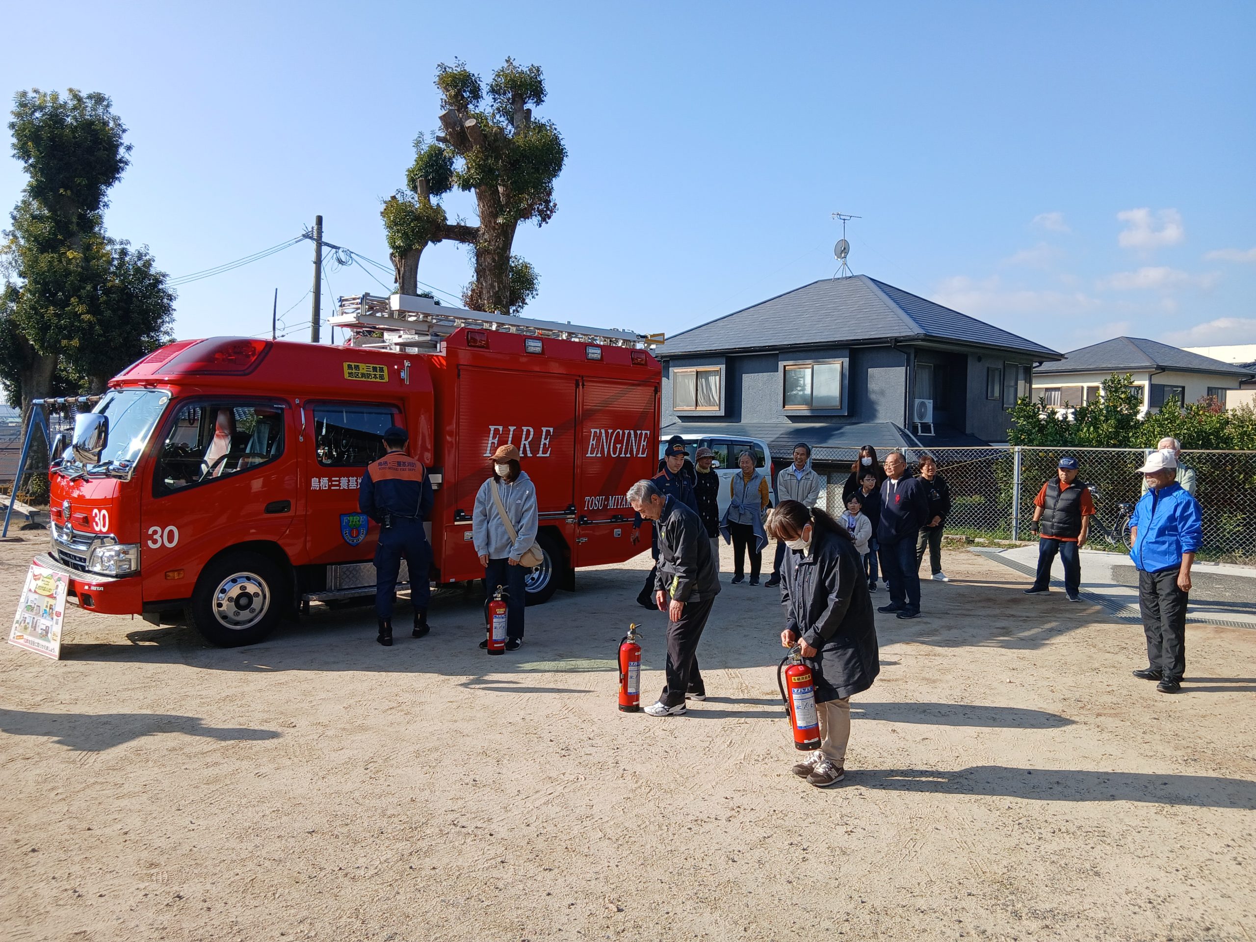 行事 令和7年 避難訓練 11月15日 2025年11月17日 2025年11月17日 Facebook postLINE 避難場所に集合後、鳥栖市消防署から説明を受けました。 野外の消火訓練終了後、公民館にて火災時の諸注意をビデオを見ながら説明を受けました。 避難訓練お疲れさまでした。 Facebook postLINE